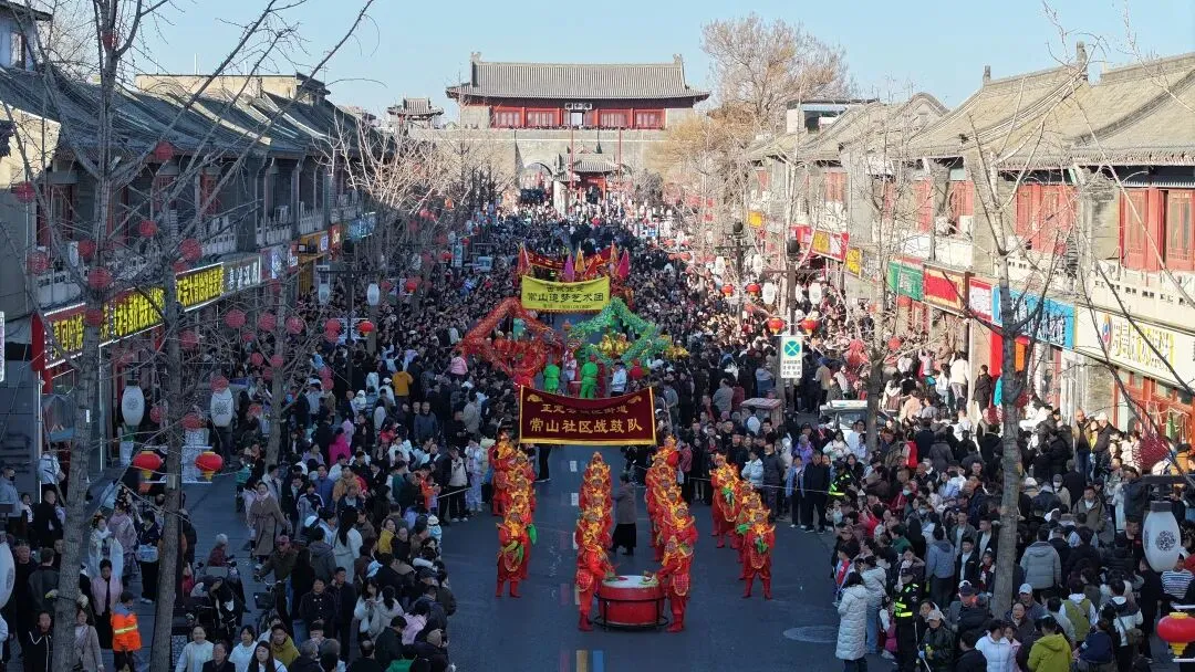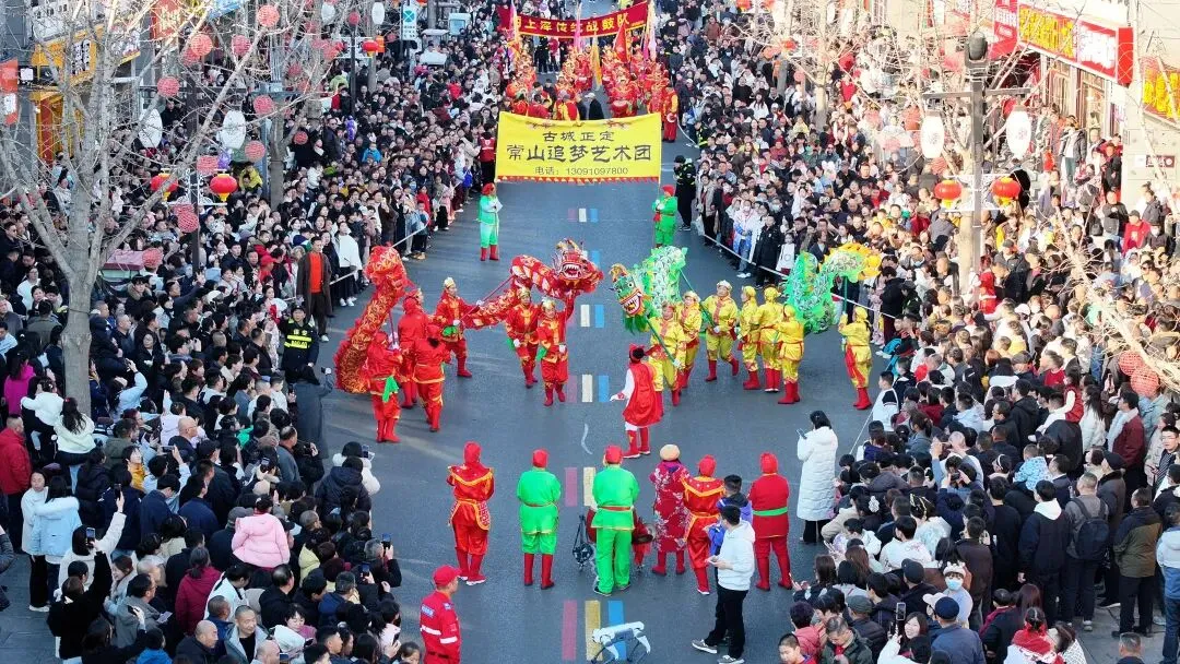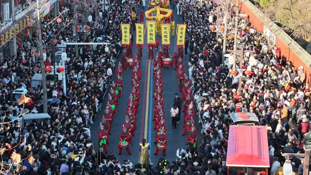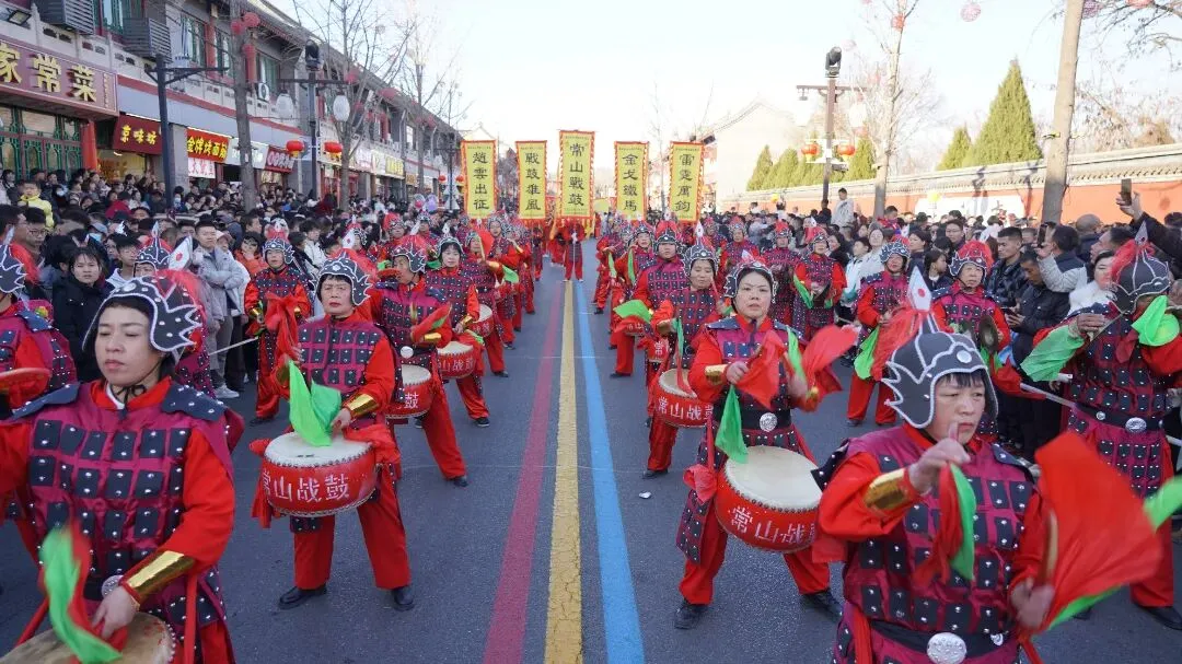 咚!咚!咚咚咚!还没看到队伍先听到震天响的锣鼓声