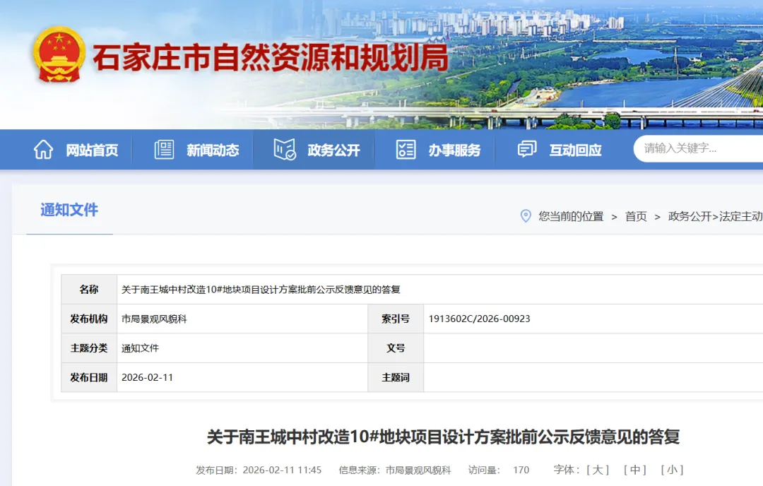 南王城中村改造10#地块位于裕华区塔康路以南、建华大街以西、塔北路以北,用地性质为商业服务业设施用地。该项目于2025年12月30日至2026年1月11日履行批前公示程序,公示期间石家庄市自然资源和规划局裕华分局收到天海·誉天下小区业主反馈意见4份,我局高度重视,会同项目建设单位和设计单位与反馈意见业主逐一电话沟通,就公示反馈意见进行了解释解答,现就涉及我局职责有关内容再次答复如下: