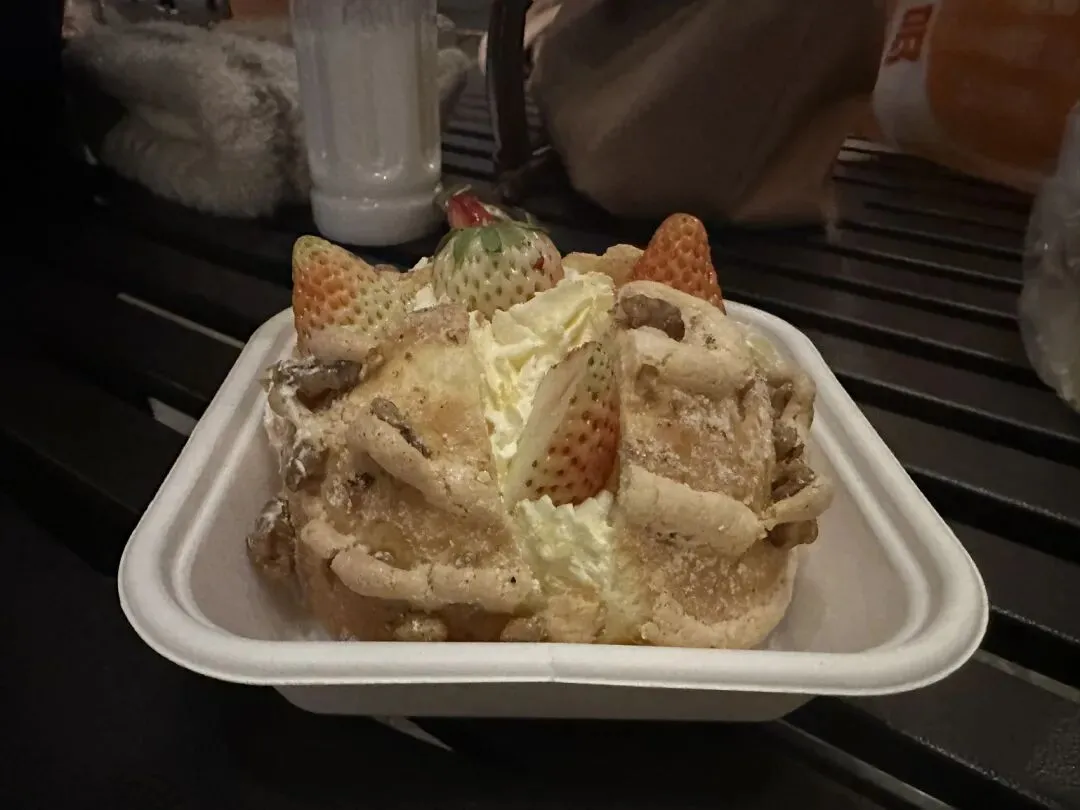 首先吃的是草莓炸弹,这个蛋糕里面的奶油还是挺甜的,外面是那种硬的甜甜的糖霜,整体口感还是比较甜的,有点太硬了。
