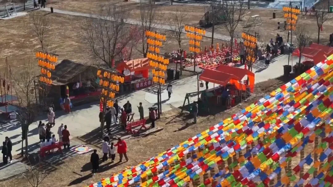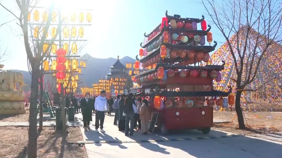 2月19日下午,记者在夜肆石家庄江湖庙会现场看到,漫天彩条随风摇曳,灯笼缀满街巷,巨型雪人矗立入口,处处都是别具年味的打卡地。