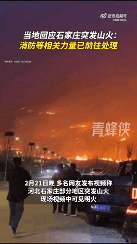 2月21日晚,多名网友发布视频称河北石家庄部分区域突发山火,现场视频中可见明火。