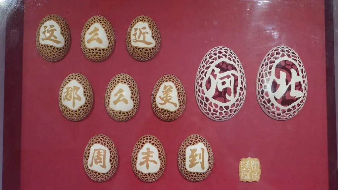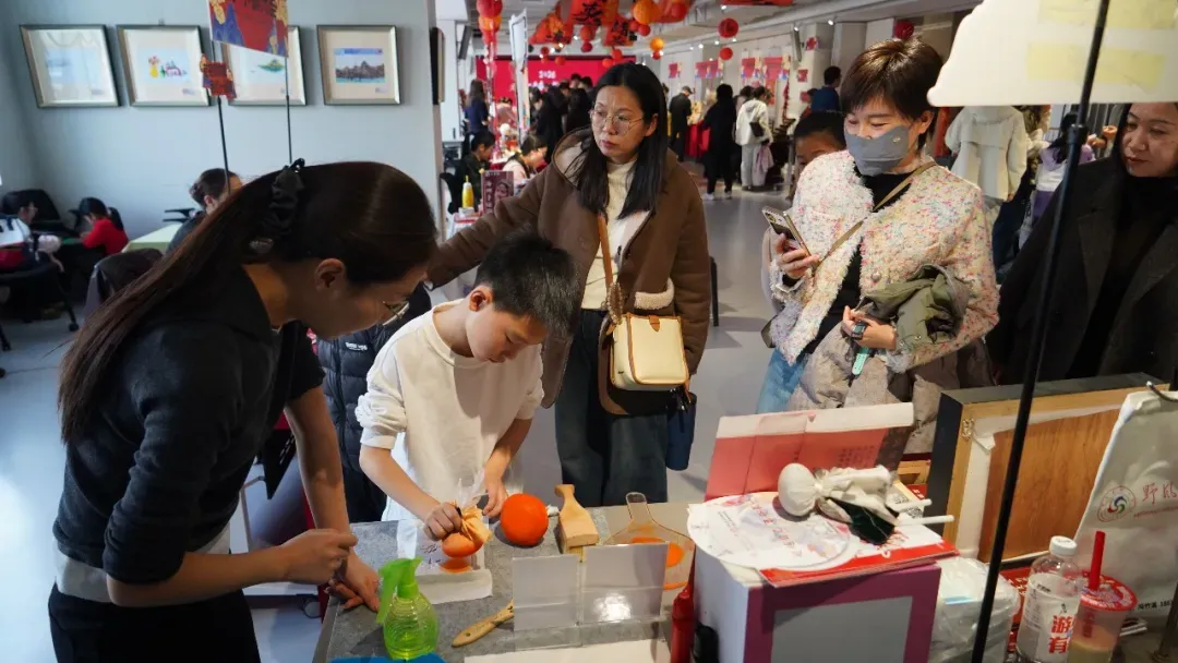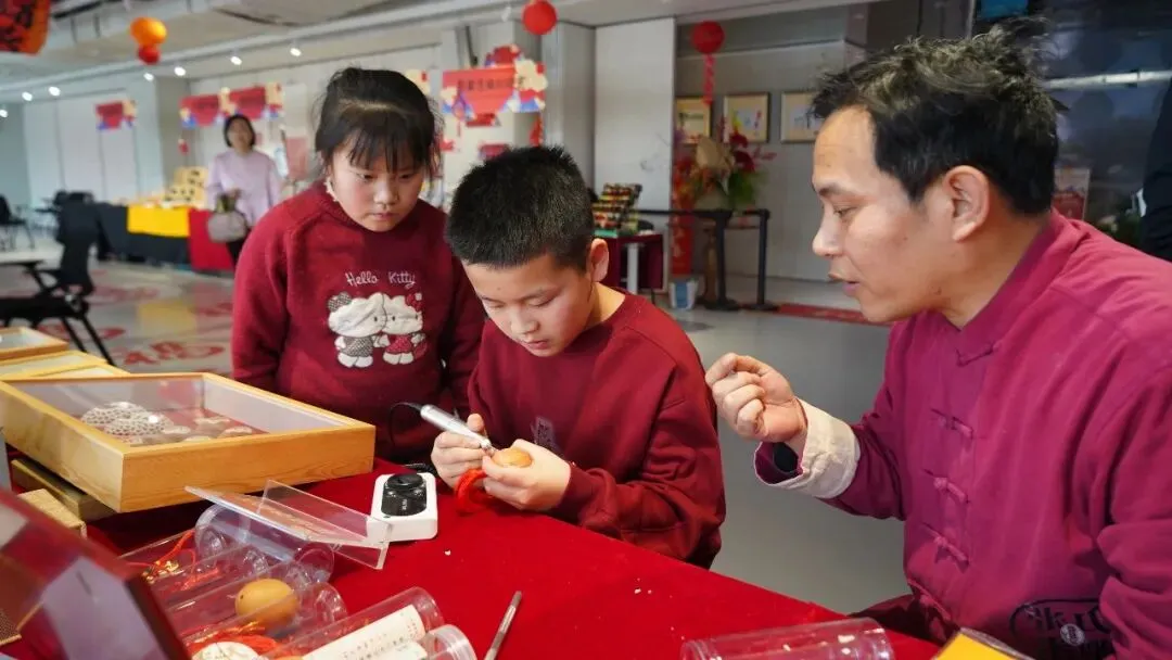 武女士带着一双儿女专程赶来,8岁的女儿赵远诗兴高采烈地为记者展示了刚体验制作的版画作品,“能亲手参与年俗体验,我感觉很有意思!”12岁的哥哥赵远航则被蛋雕深深吸引,摊位上鸡蛋、鸽子蛋、鸵鸟蛋制成的作品依次排开,薄薄的蛋壳上展示着细腻雕工,手艺之精令人称奇。
