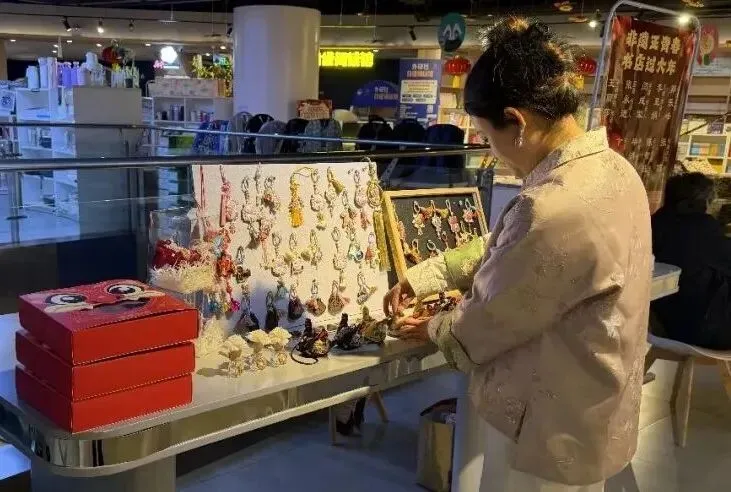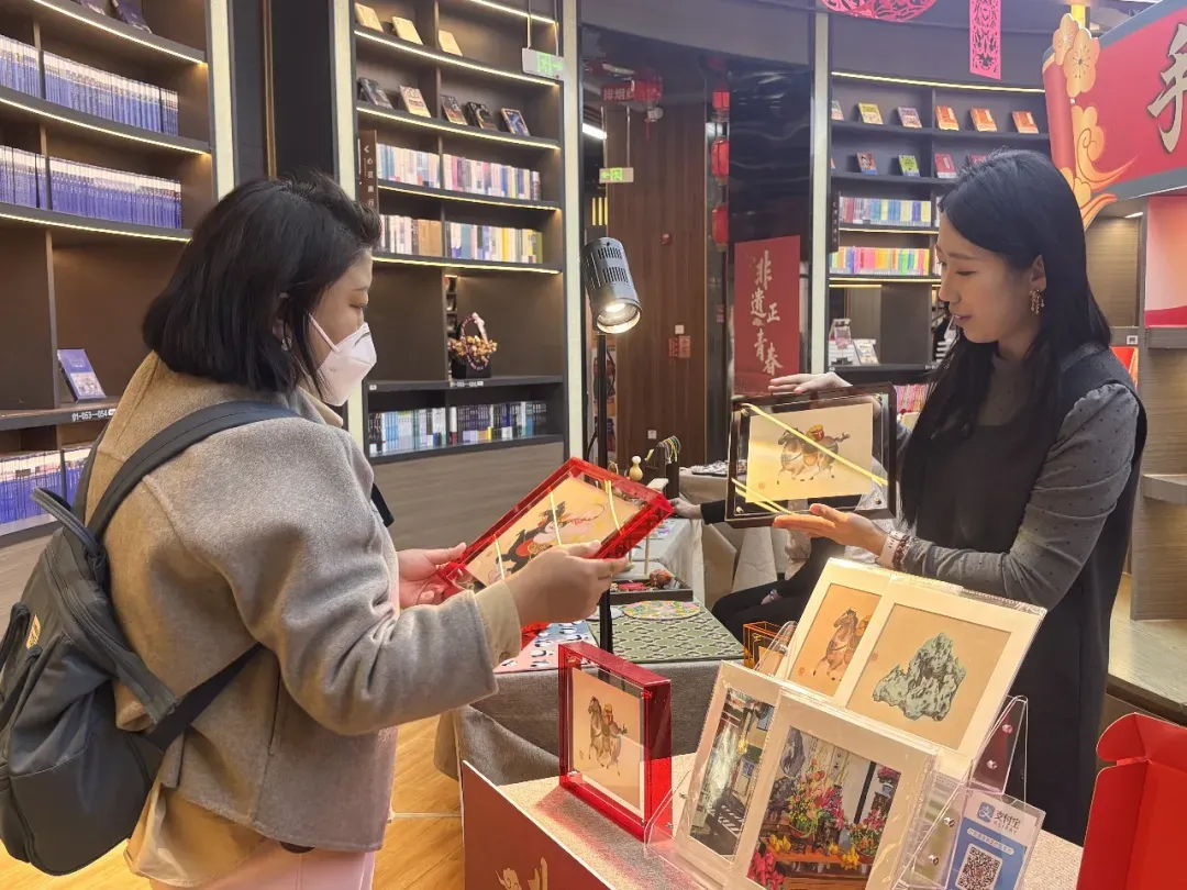秦皇岛市新华书店内,抚宁白腐乳、木板烙画、秦抚泥塑、中国结等轮番亮相,沉浸式的体验让现场年味与书香交融,非遗魅力尽显。