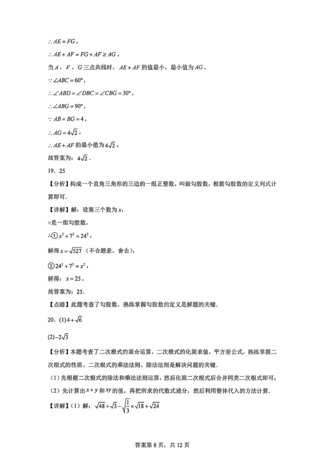 当前位置:首页>石家庄>2025石家庄28中八下开学卷数学卷答案详解