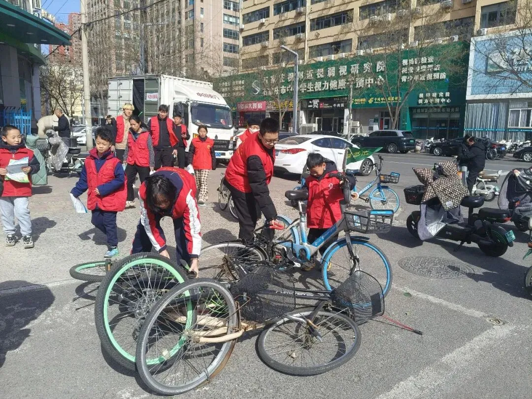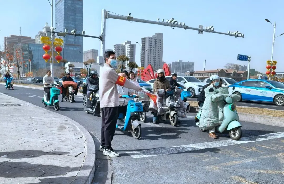 与此同时,由服务队负责人温德军带领的另一组志愿者温棋羽、赵勇、齐佳拴、齐佳瑞、杨仁义、蔡金琪、李昊泽、李昊㑨、陈荣、田建国、齐立强、张昱桐、张钰淼、程淑琴、马安博、马锦博等人,在中山路、大经街等繁华路段开展禁炮巡逻,并将路边乱停放的共享单车摆放整齐。