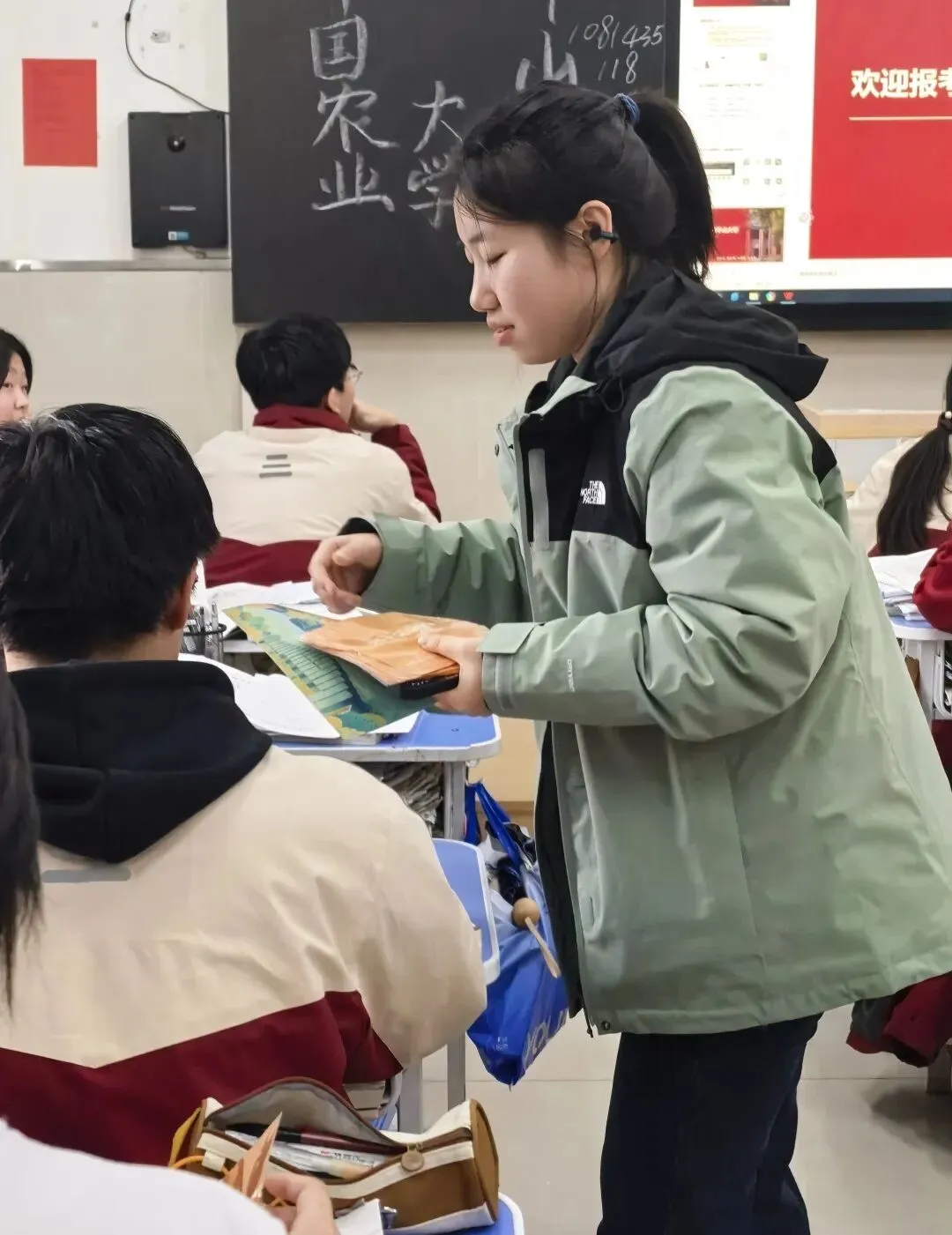 宣讲开始前,我们为在场的学弟学妹送上农大文创。这些小物件不仅是农大的“名片”,更让大家提前感受到了大学的人文氛围,也为后续宣讲埋下了期待的种子。