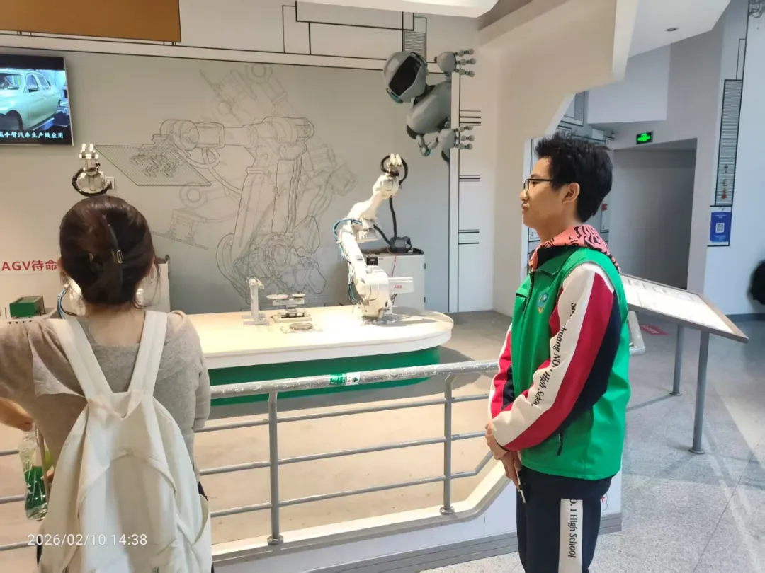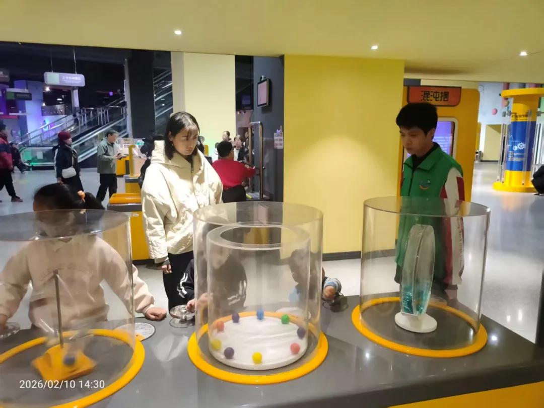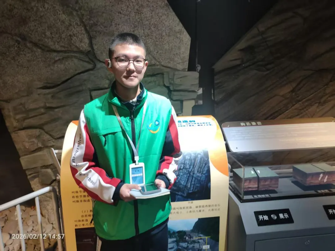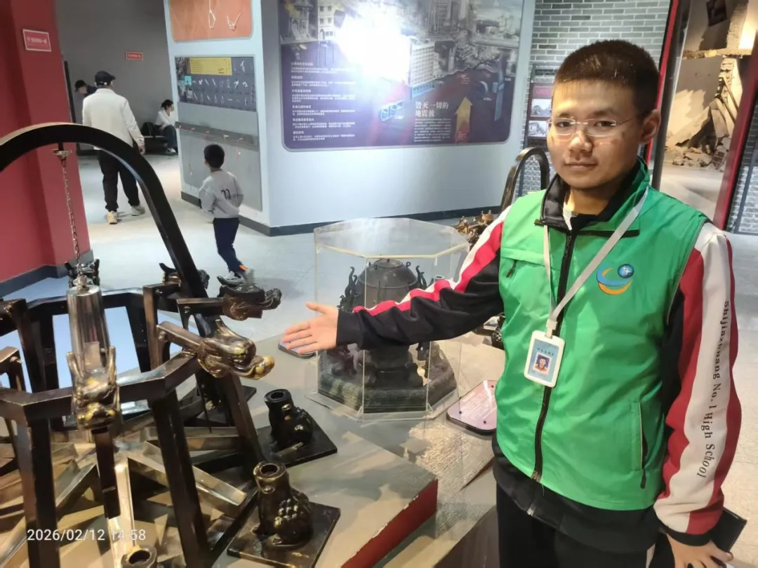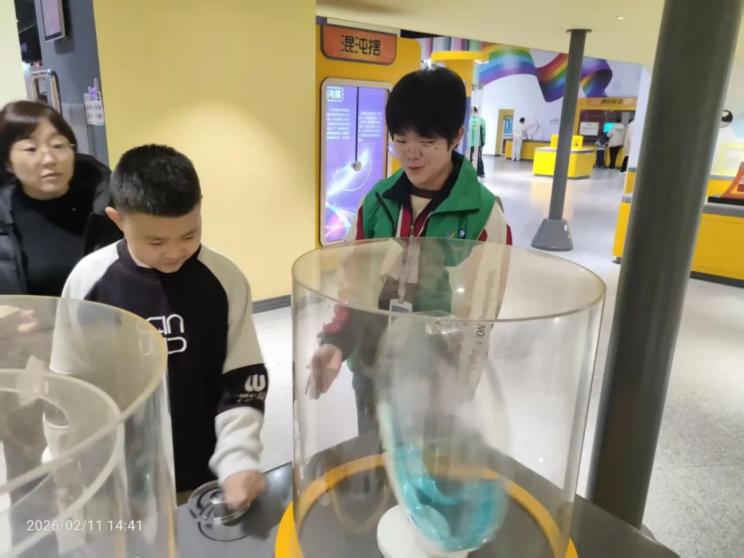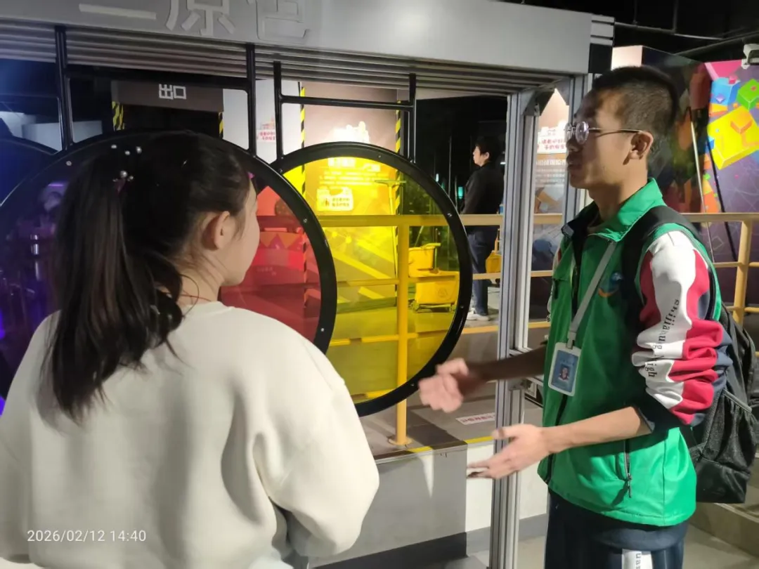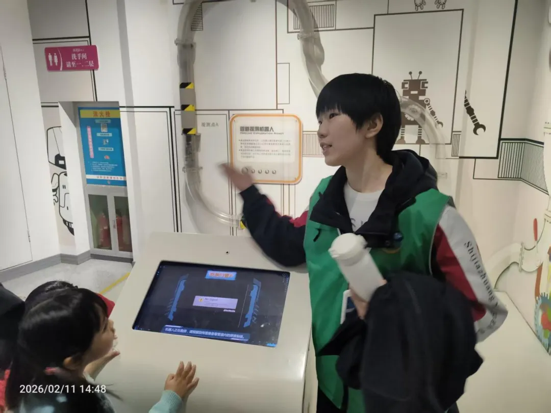 这个寒假,石家庄一中满天星志愿服务队的校园绿,与河北省科技馆的科普红,交织成一道亮丽的风景线。在学生科学院院长韩金山的组织带领下,一群朝气蓬勃的学子走出校园,走进河北省科技馆,用热情的服务和专业的讲解,为公众带来温暖,也为自己的寒假生活增添了浓墨重彩的一笔。此次志愿服务活动持续三天,覆盖科技馆多个核心展区,服务游客几千人次,成为寒假期间科技馆内最活跃、最温暖的一股青春力量。志愿者们身着统一的绿色马甲,穿梭于各个展厅之间,如同点点星光洒落科学殿堂,用青春的脚步丈量责任,用真诚的微笑传递知识。