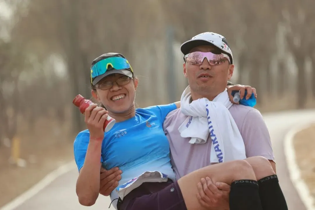 本届赛事由跑者大本营主办,中乔体育担任战略合作伙伴并提供奖品赞助,积仑运动袜、鹿泉区改霞香油坊提供奖品赞助。参赛选手均为常年深耕马拉松、越野跑领域的运动爱好者,赛场之上温情涌动:年轻情侣并肩冲刺、互帮互助,亲友团全程守候、倾力保障,用陪伴为选手筑牢后盾。十翻组女选手高素丽顽强冲线后,全程负责保障的丈夫当即送上暖心公主抱,生动诠释了“为爱翻山越岭”的浪漫与坚守,成为赛场最动人的瞬间。