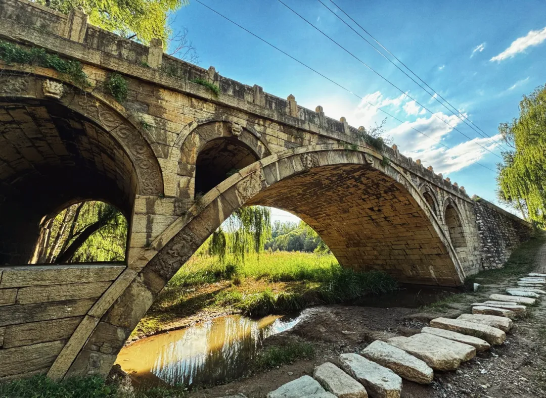 拍桥有窍门。清早人少,桥影在水里像画。别在桥上蹦,文物受不得这个劲,管理员看你像看熊孩子。
