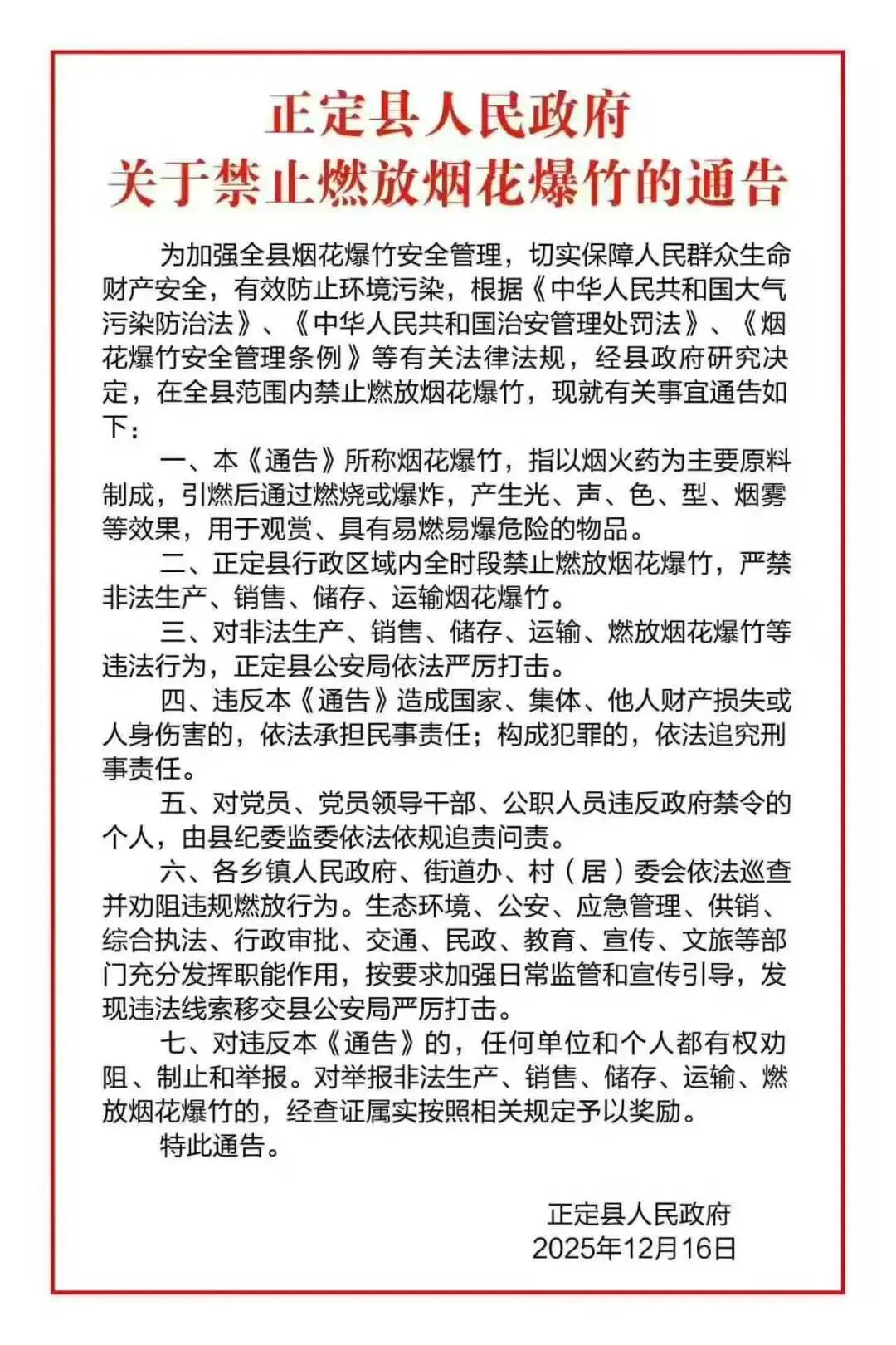 石家庄市及下辖的各县市区等地,每年都会发布详尽的《关于禁止燃放烟花爆竹的通告》。这些通告通常明确了禁放区域(如主城区、人员密集区)、禁放时段以及严厉的处罚措施。从文件上看,制度不可谓不严,责任不可谓不清。