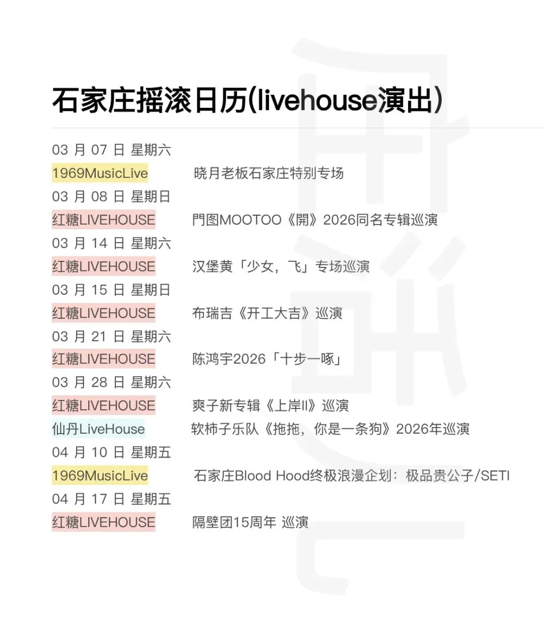 >石家庄摇滚日历(Livehouse演出)2月23更新