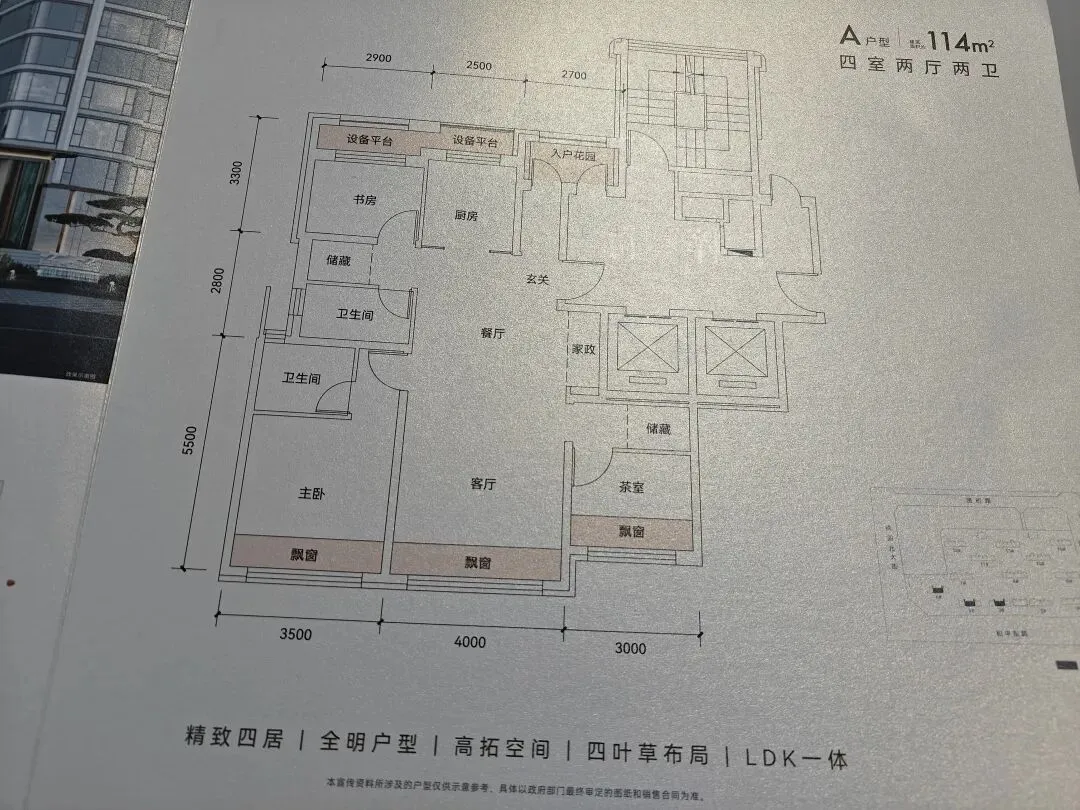 5.户型设计,全部四叶草户型,四个卧室互不打扰,客厅从4米到5.8米虽然没有天瑞府大宽厅,但是在新规产品客厅还算可以,114平南向次卧略小,128平样板间,感觉南向次卧床有点小,139平户型方正,各个空间充足,而且楼栋分布在中间或者北侧,我个人觉得139平户型挺好的,150平户型客厅卧室空间更大,但是户型占比比较少。主卧门朝向北侧开和北侧次卧门对门,通风效率提高