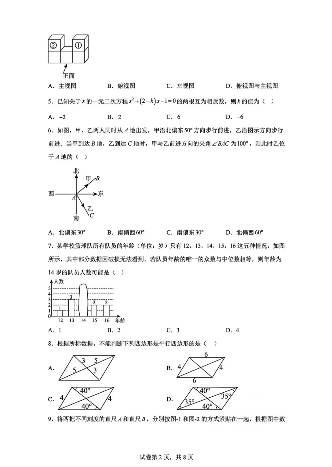 2026.1河北省九年级结课考试数学试卷