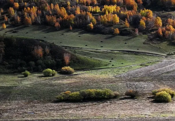 落叶松的针叶,在晨雾里挂着露水。傍晚的牧归声,和低矮的云层缠在一起。