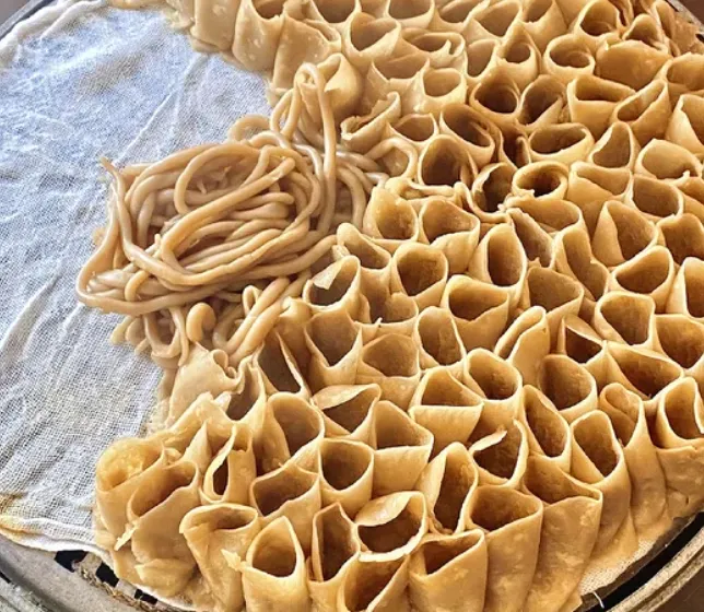 一定要尝尝莜面窝子。这东西看着粗糙,其实做法讲究。蒸熟了蘸着羊肉蘑菇汤吃,口感劲道,带着股粮食原本的香气,吃完浑身都暖和。