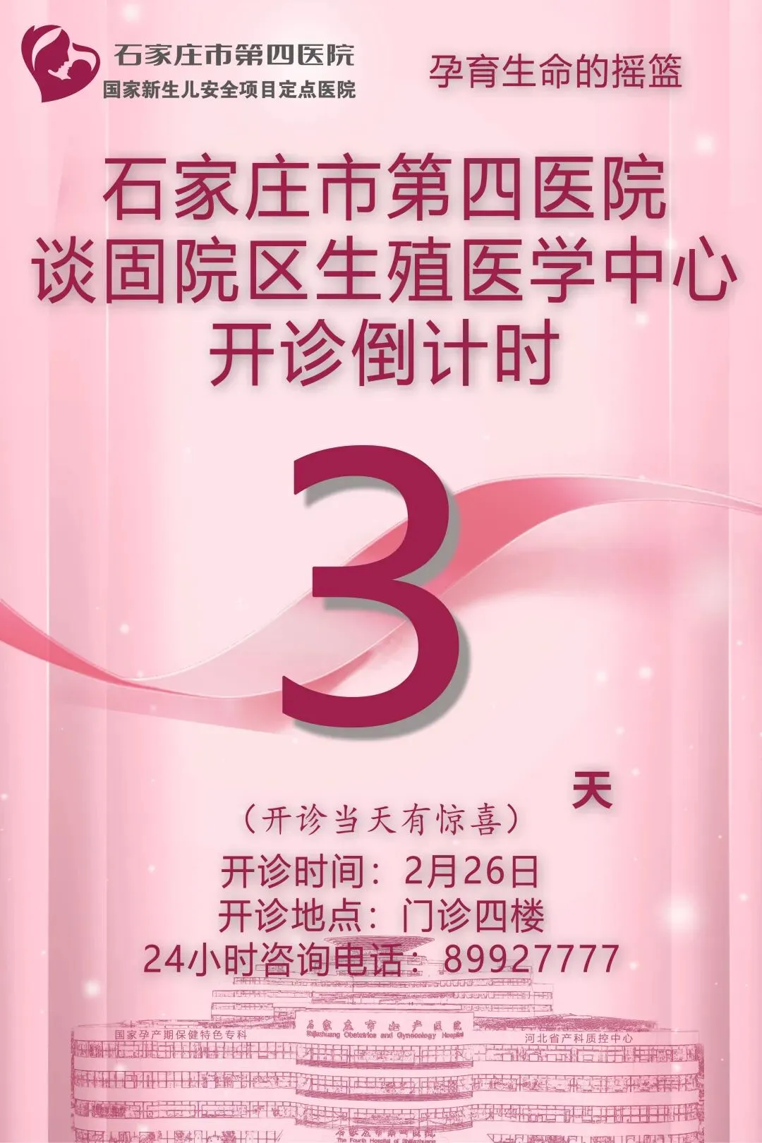 >石家庄市第四医院谈固院区生殖医学中心开诊倒计时3天,2月26日就诊有惊喜,敬请关注!