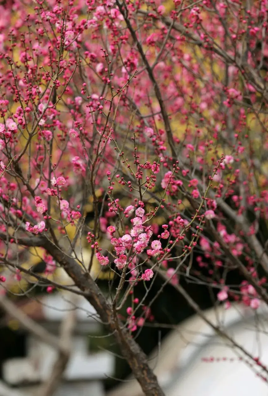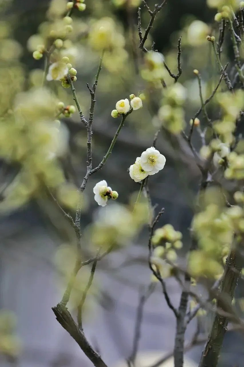 最难得的是,腊梅与梅花品种多,树型老,因为以翠竹松柏为背景,可拍出江南梅花春的氛围感来。
