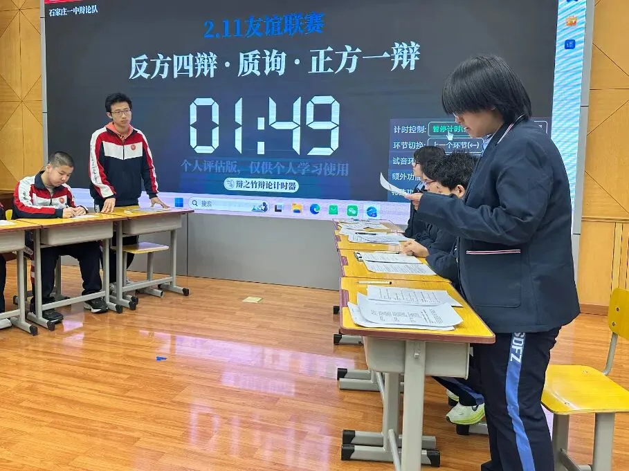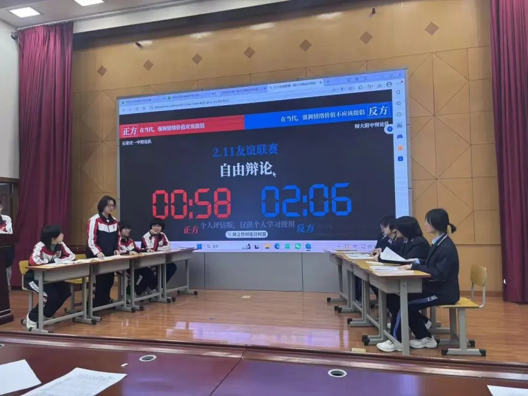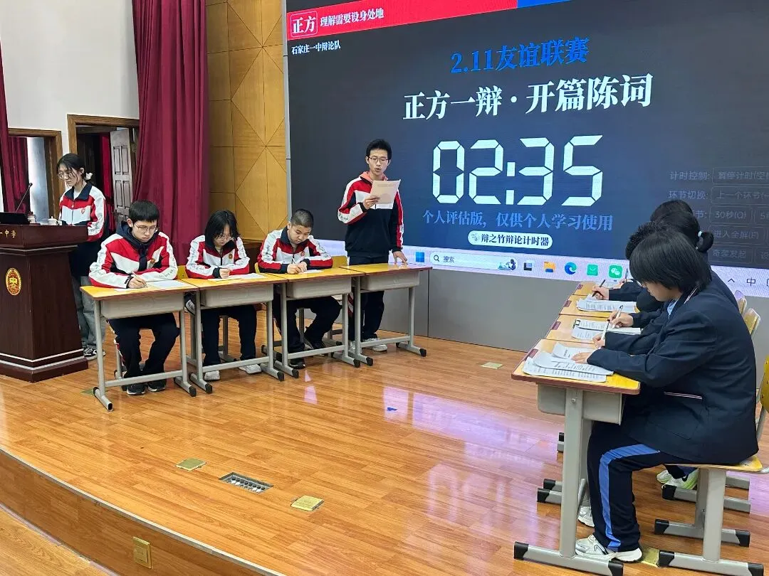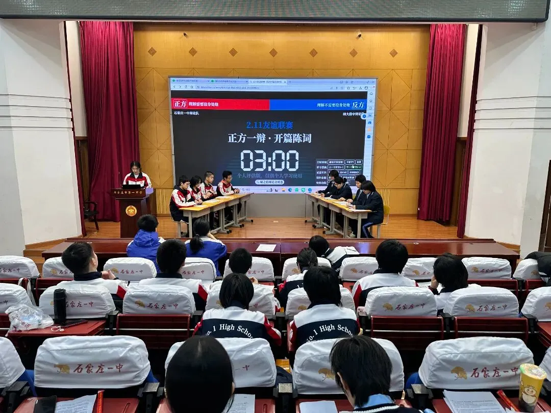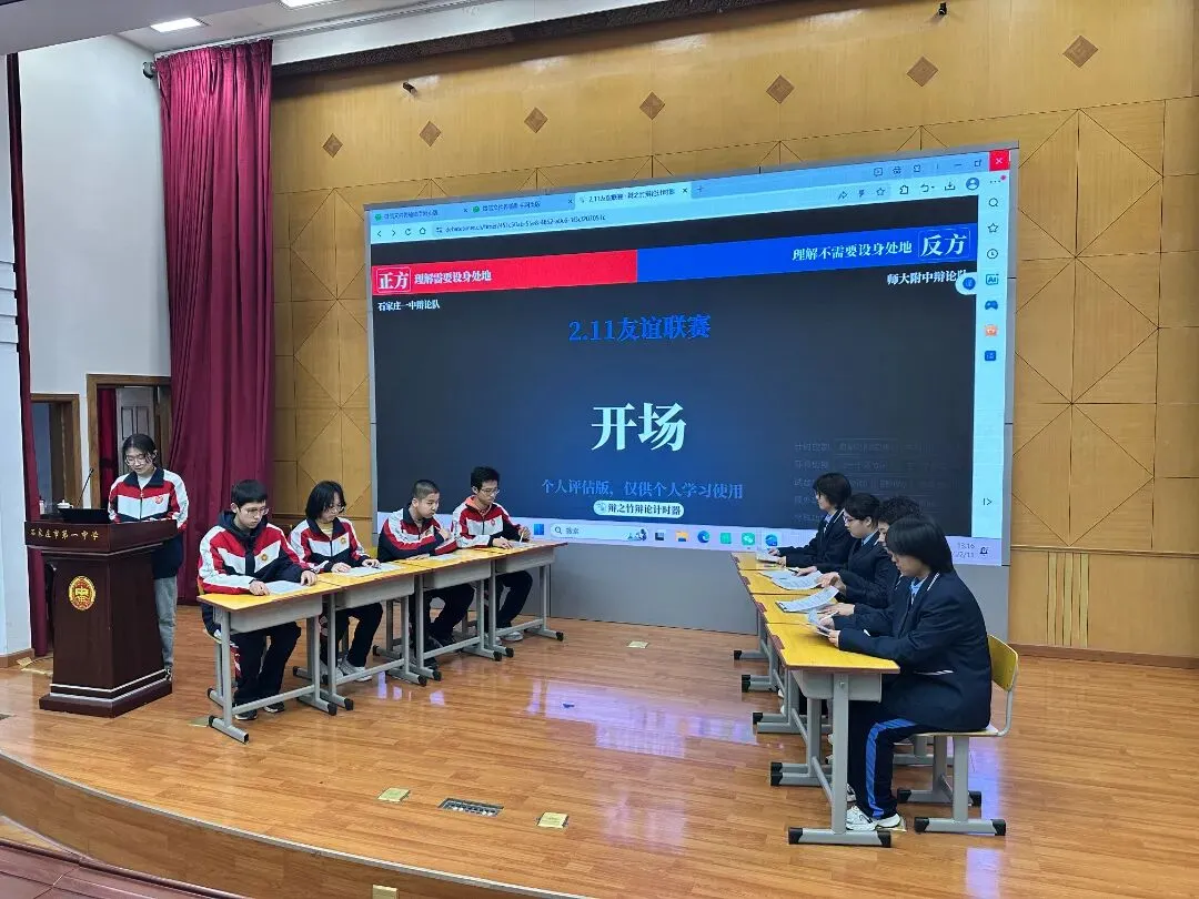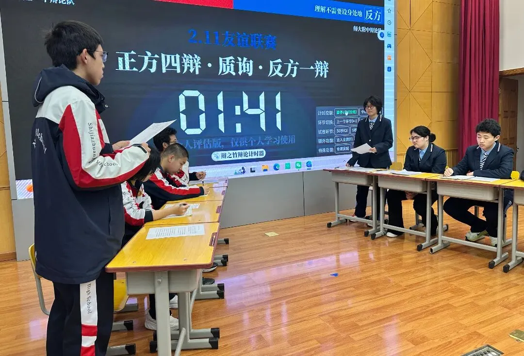 唇枪舌剑论天下,思辨青春展芳华!寒假期间,石家庄一中思宇中文辩论社与河北师大附中辩论队携手开展的校际辩论交流活动圆满举行。一场以语言为媒、以思辨为魂的青春邂逅,让两校学子在思想的碰撞中收获成长,在并肩切磋中缔结友谊,留下了一段镌刻青春印记的美好回忆。