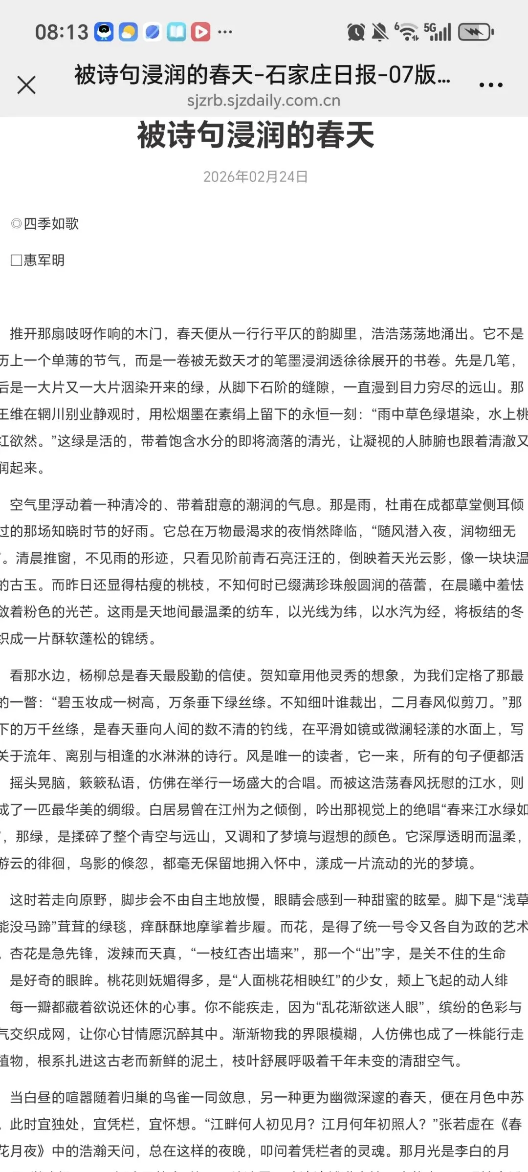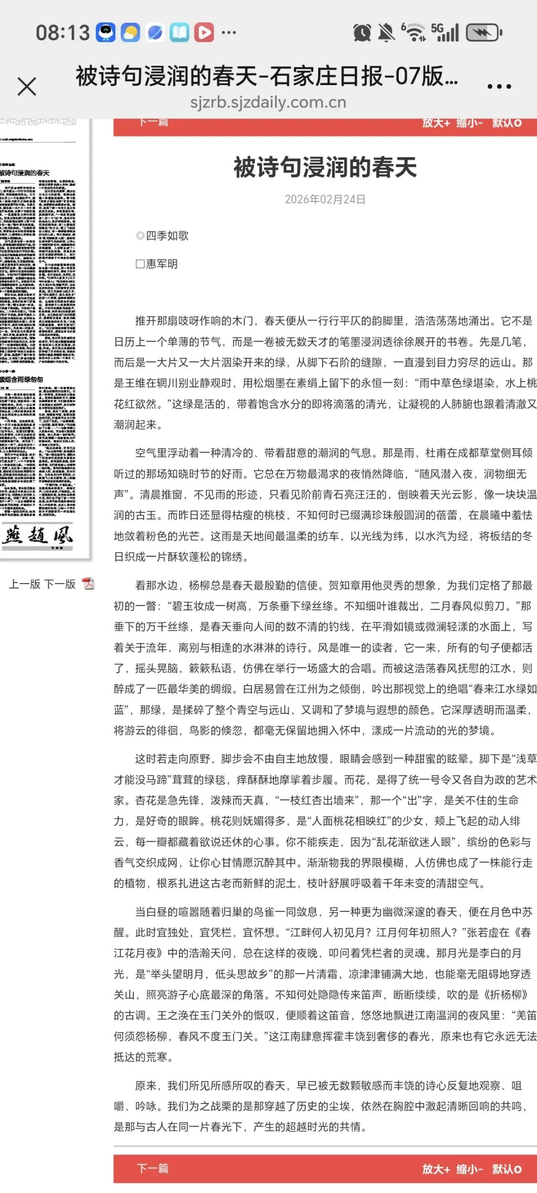>2026第32篇次,今日《石家庄日报》副刊刊发散文一篇!