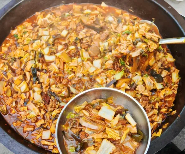 村里也有卖大锅菜的,白菜、粉条、豆腐炖在一起,看着粗糙,但吃着踏实,是那种小时候在姥姥家吃饭的味道。