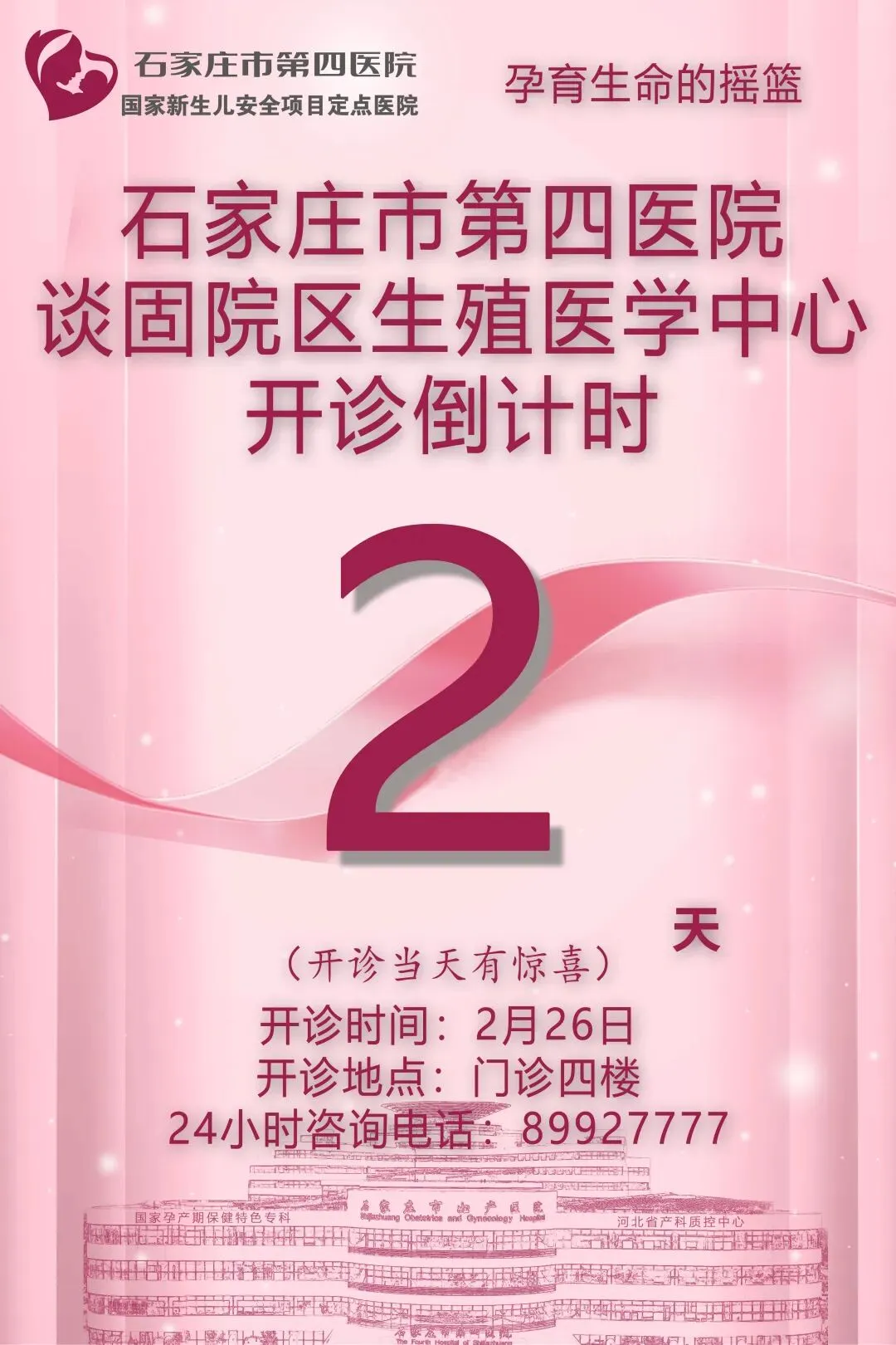 >石家庄市第四医院谈固院区生殖医学中心开诊倒计时2天,敬请关注!