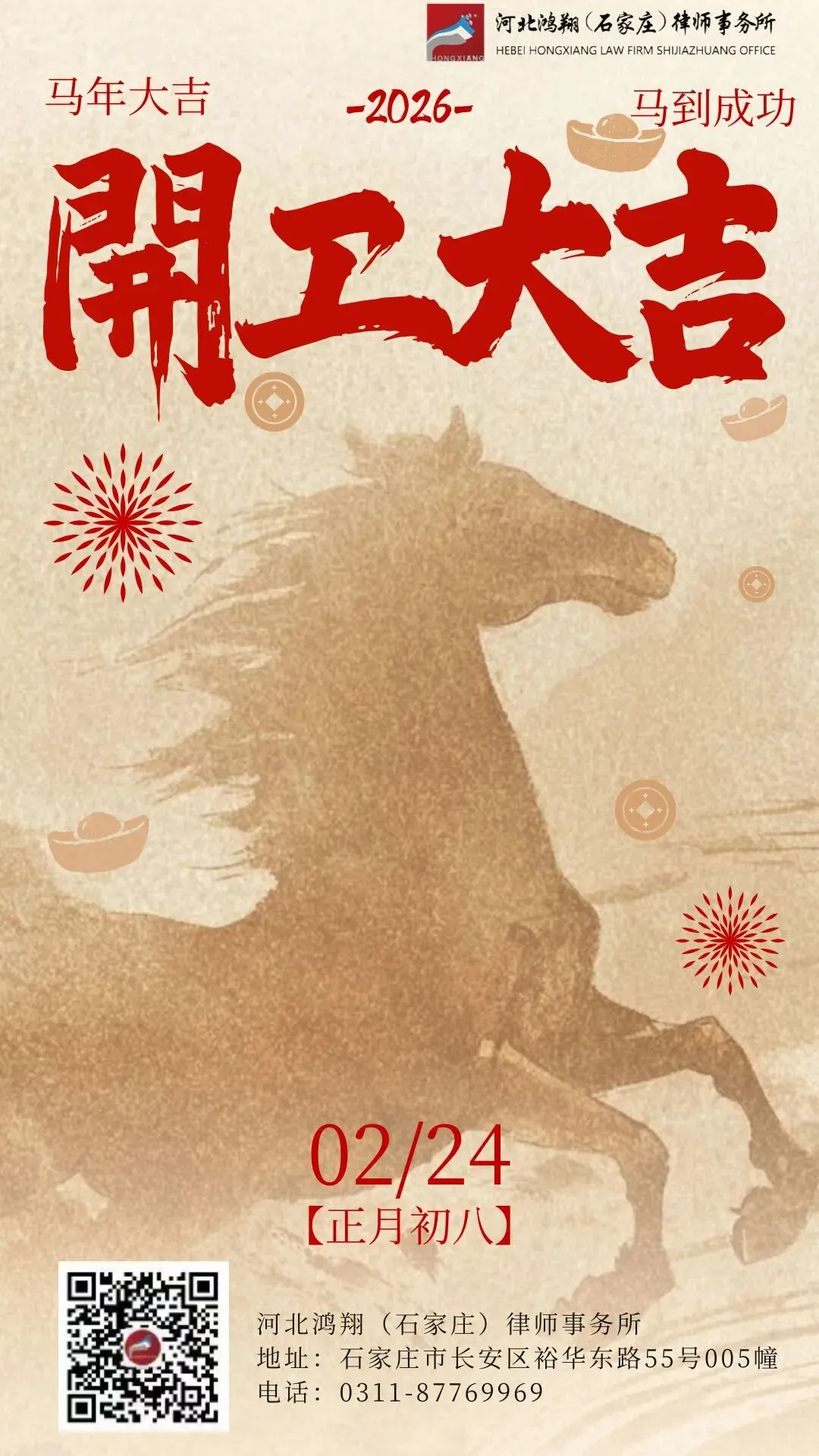 开工大吉|鸿翔石家庄律师愿您开工财气聚,与您共赴马年新程