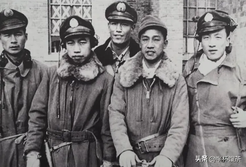 起义飞行员石家庄合影左起飞行员陈九英、领航员张祖礼、飞行员郝桂桥、领航轰炸员周作舟、飞行员俞渤