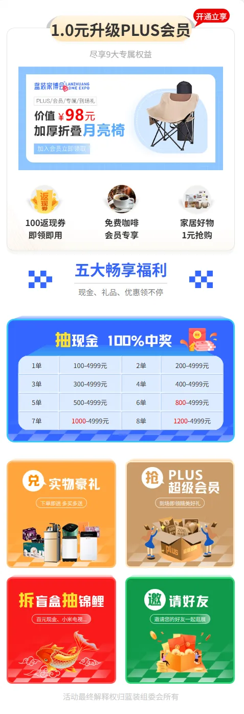 拆盲盒抽锦鲤:持有《蓝装家博会专用订单》任意金额,即可参与此项活动,现金和好物件随意抽。
