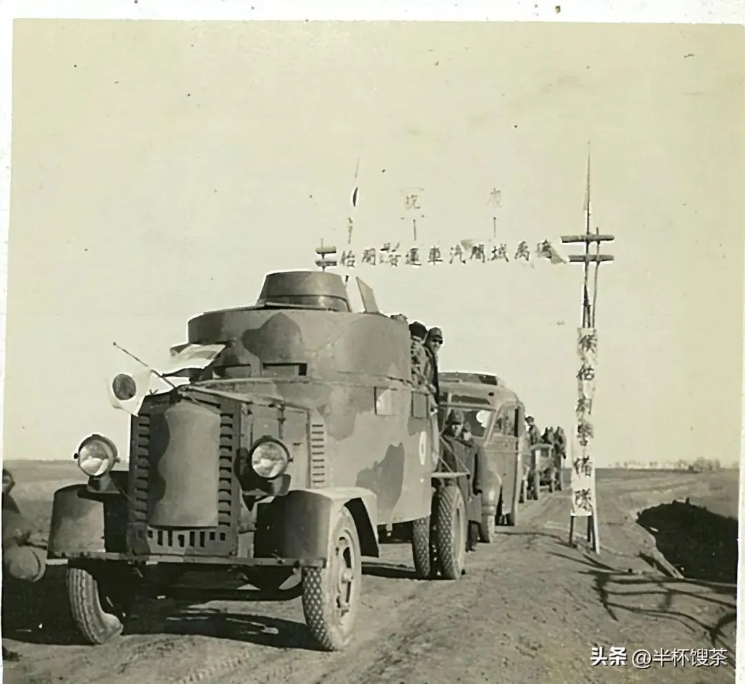 侵华日军在石家庄封锁交通的巡逻装甲车