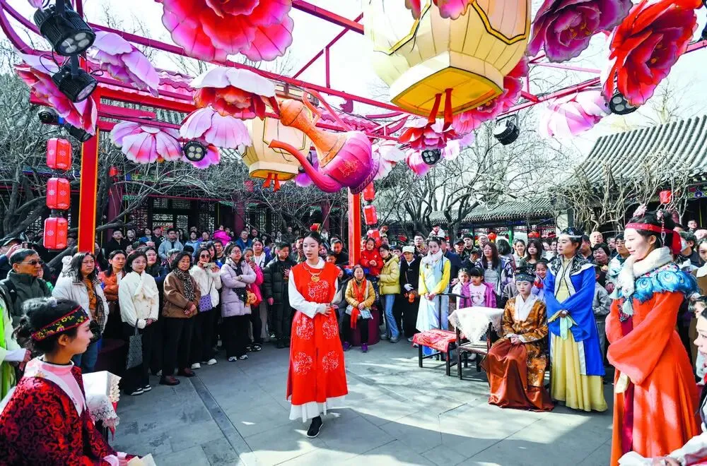 据了解,石家庄整合文旅资源,围绕“非遗、演艺、美食、冰雪”开展25项百余场活动。河北省石家庄市平山县西柏坡景区推出沉浸式红色演绎、场景还原、与群众互动的红歌表演等特色活动;织音1953举办“小马市集”,汇聚无极剪纸等非遗项目,融合工业风与民俗味;德明古镇等推出打铁花、猜灯谜等活动,兼顾各年龄层需求……