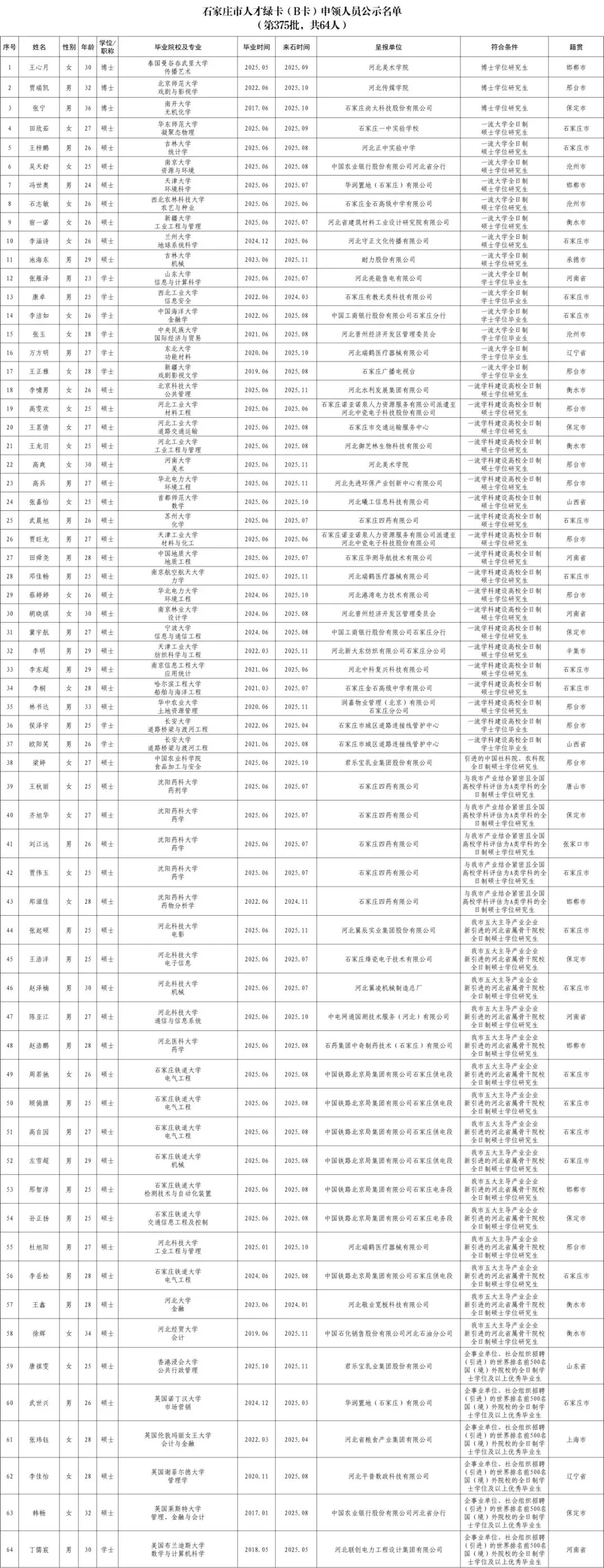 根据《石家庄市人才绿卡(B卡)管理办法(试行)》规定,经过本人申请、网上预审、单位审核、资格复审,拟为申请对象发放人才绿卡(B卡)。