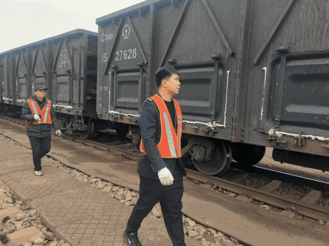 磁山营业部严格落实值班盯控制度,强化普阳钢铁专用线钢板装卸作业安全管控,全力保障春节期间货运作业安全高效。(磁山营业部供稿)