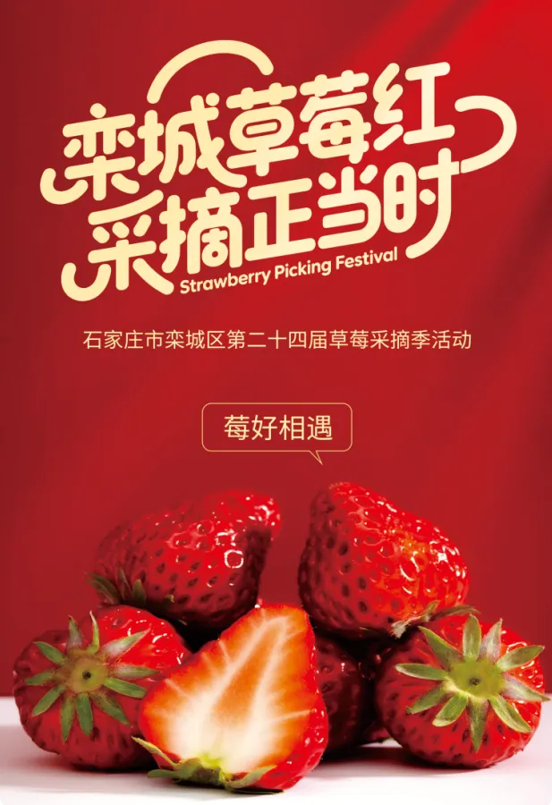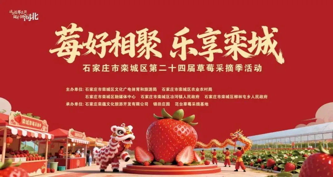 春风送暖,莓香满溢。为充分展示“三苏祖籍·味道栾城”独特魅力,推动文旅农商体深度融合,擦亮“栾城草莓”金字招牌,由石家庄市栾城区精心策划的“莓好相聚 乐享栾城”——栾城区第二十四届草莓采摘季,将于2026年2月26日在锦田庄园、范台草莓采摘基地同步启幕。