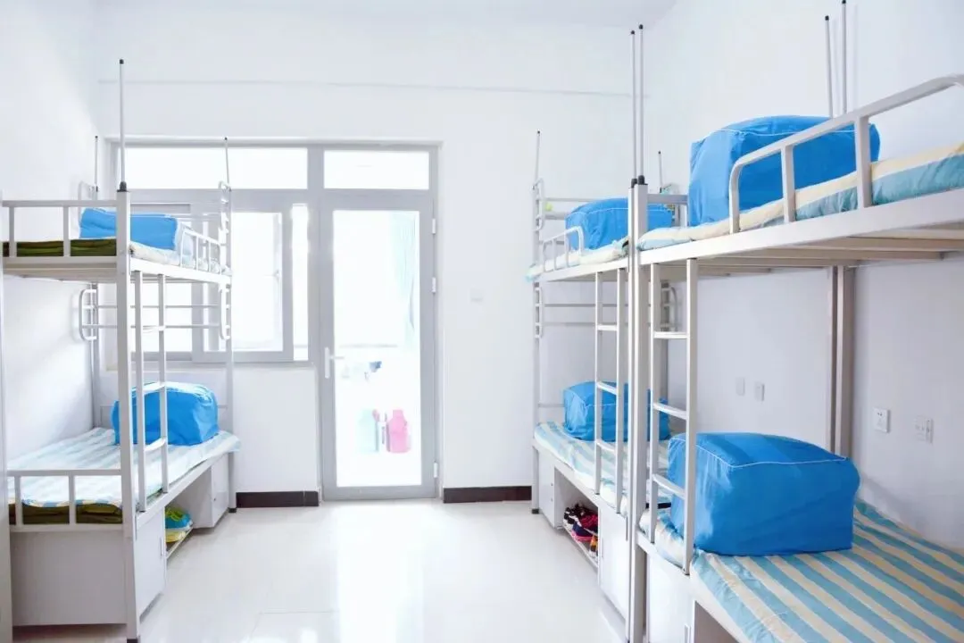 宿舍标配6人间,每间宿舍有独立阳台、独立卫浴,采用中央空调制冷系统,统一地热供暖,全楼配备24小时新风系统和紫外线空气消毒。宿舍管理安全高效,学生出入采用人脸识别系统,入口有红外测温仪。
