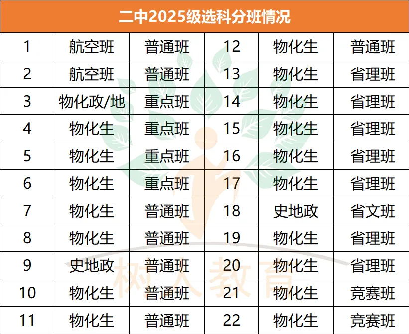 二中班型整体基本不流动,高中三年保持中考确定的班次,仅在“分科”时存在调整