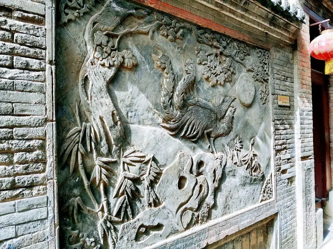 “丹凤朝阳”砖雕影壁,象征着吉祥、太平与贤才遇明主。