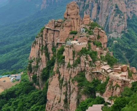 这里最出名的是嶂石岩,那红色的砂岩地貌,不是那种精雕细琢的盆景,而是大开大合的斧劈刀削。山不高,但有气势。站在崖壁下,你会觉得自己很小,但心很宽。没人拿着大喇叭催你往前走,你就在那石头缝里瞎转,看云彩怎么挂在树梢上,看老乡怎么在房顶上晒柿子。