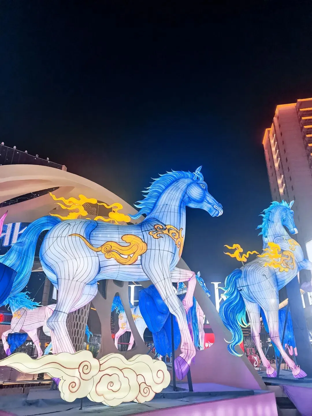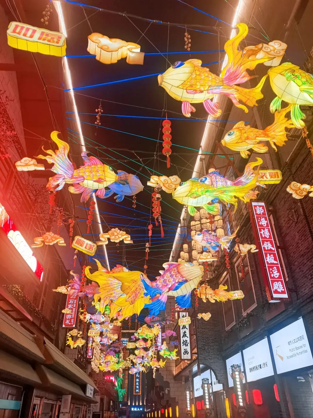 这里灯火璀璨,年味十足。长信宫灯、浪浪山的小妖怪、哪吒等灯组流光溢彩,非遗市集热闹非凡,各种美食小吃飘香。步行街与彩灯相映,处处是喜庆与温馨,一步一景皆如画,是石家庄新春必打卡的浪漫夜巷。