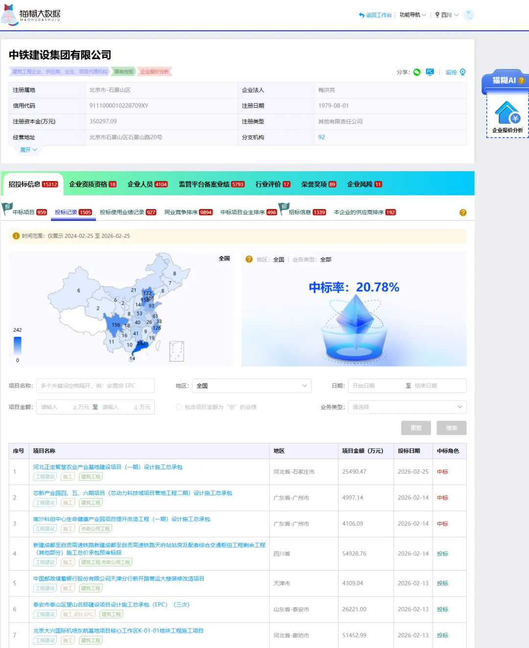 如果您想了解该中标人的招投标经营状况,可以通过猫糊平台的“企业查询”来查看该企业在过去两年内全国各地的投标记录。