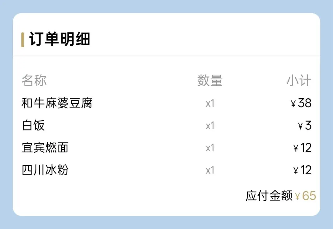 而这家店的麻婆豆腐因为更换了一些食材,定价也涨到了38元,我认为是有些贵的。