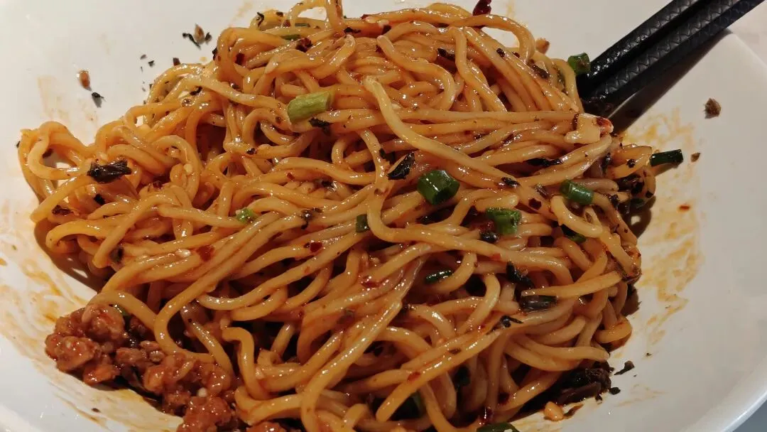 燃面,用料和味道都给足了,就是面条本身口感有些黏糊。