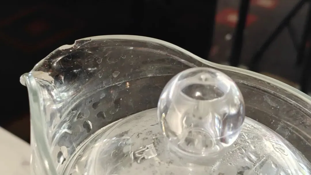 再比如餐具,桌上水壶的壶口已经缺了口,有了些许安全隐患,该及时更换。