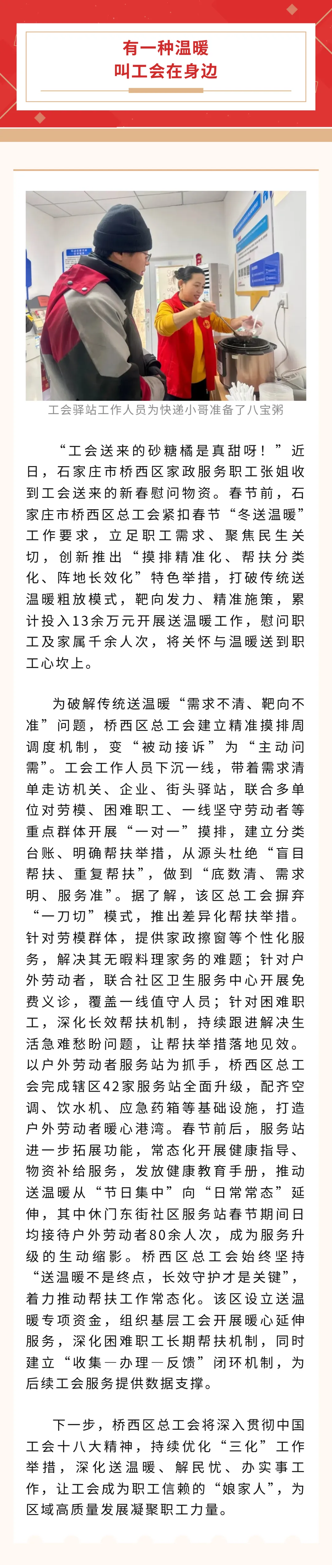 >石家庄市桥西区总工会:精准送温暖绘就职工幸福年景|有一种温暖 叫工会在身边㊻