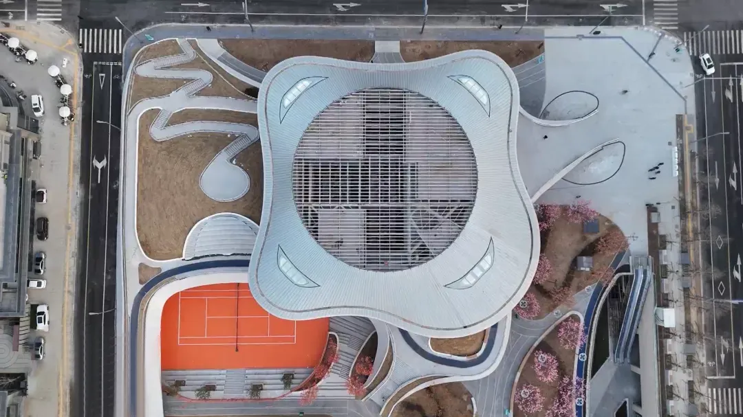 走进馆内,这朵“云”里别有洞天。半地下的室内篮球场,通过设计引入自然光线,毫无压抑感;室外环绕的立体跑道,使运动活力与场馆设计完美交融;半室外的观景廊道,让运动间隙的休憩也能与清风绿意为伴。这里更像一个可漫步、可休憩、可运动的城市客厅。