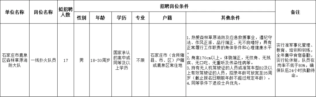 2026河北石家庄市鹿泉区公开招聘森林草原消防大队劳动聘用人员17名公告