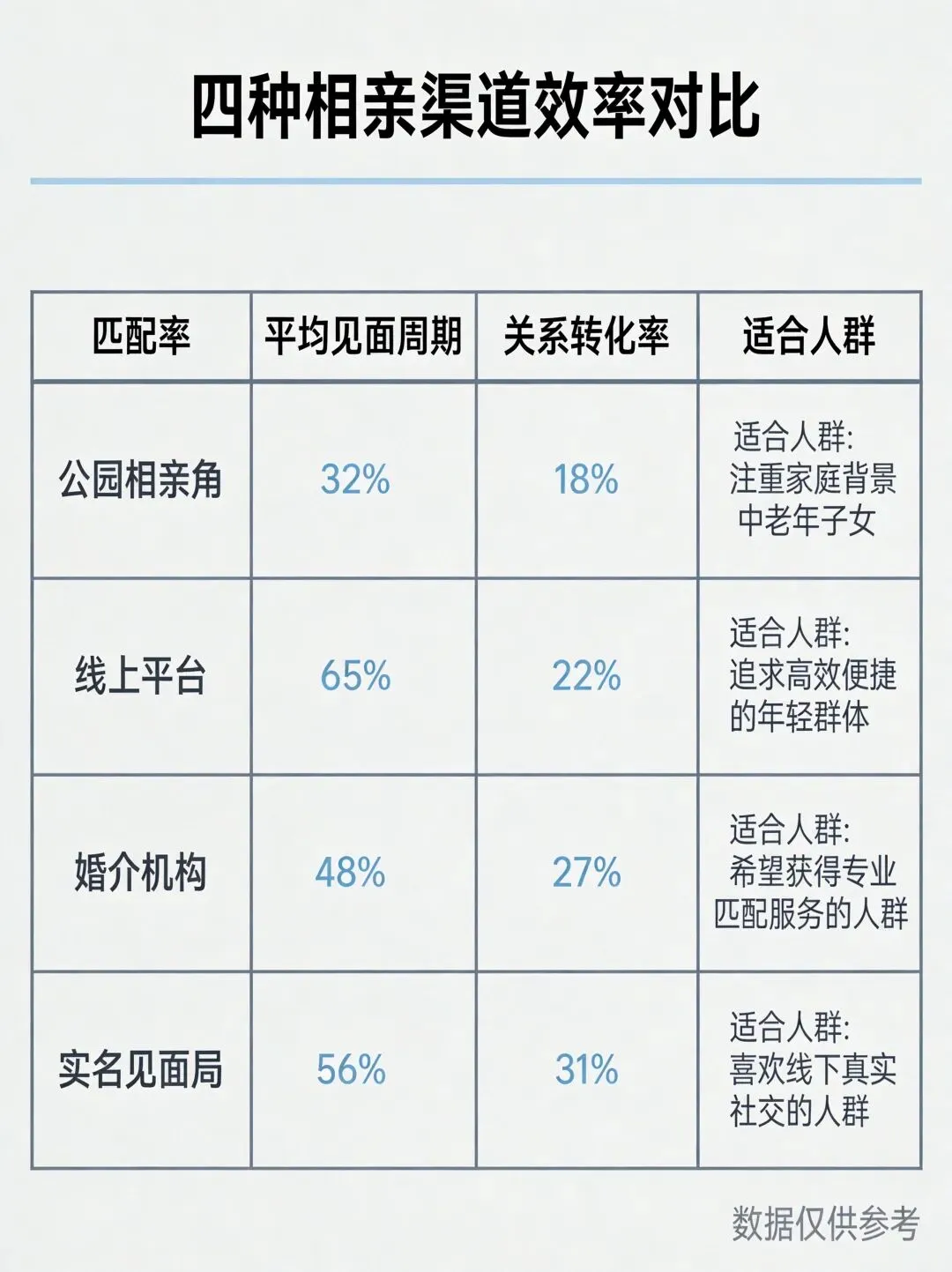 翻了手头资料,发现咱们庄里人相亲有不少“数据真相”没被看透。今天拆解四种渠道,看看哪条路最值。