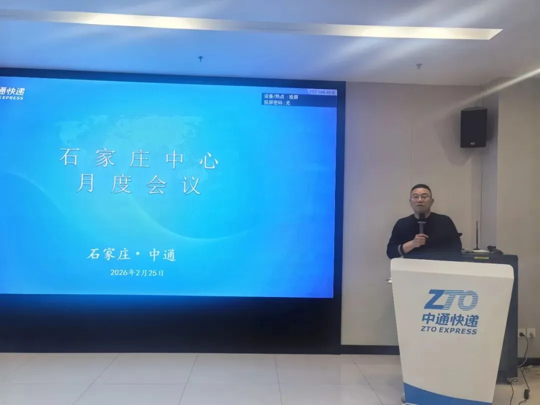 2026年2月25日,中通快递石家庄中心召开网点月度工作会议。中心负责人及所属89家网点负责人参会,会议围绕春节期间各项工作落实成效,查摆短板问题,明确改进方向及2026年重点工作进行安排部署。