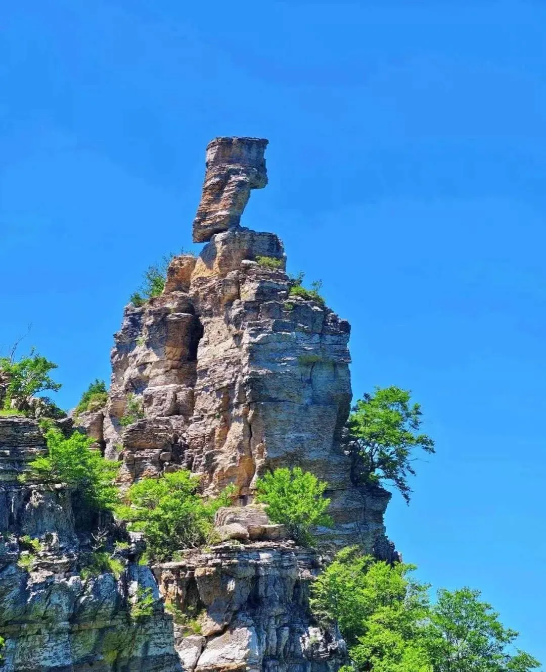 白石山到处独立的奇石,此石独自坐落在一处山头,十分有意思,细一看,犹如西游故事中的八戒娶妻。回想小时候,最喜欢的就是西游记了,百看不厌,里面的猪八戒形象懒惰,但对高小姐的情意却是没有半分虚假,这奇石也是把八戒娶妻的场景表现的栩栩如生了。