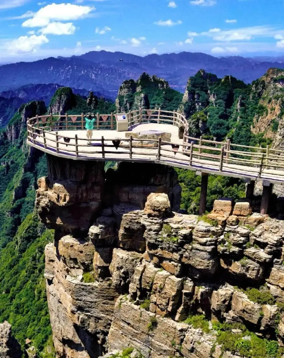 深度游路线(大循环线路):东门坐祥云门索道上山--韭菜园-选择走海拔1600米的深度旅游线路--乘坐韭菜园索道--飞狐双层玻璃栈道--自然角落咖啡厅(在这里喝一杯云端咖啡再继续游览)--仙人晒靴-三圣朝-太行之神-飞云口(索道)-山盟台-双雄石玻璃栈道-双雄守山--双雄石小吃城-八戒娶妻-海豚出水-小洞天--韭菜园,从东门(祥云门索道)下山。
