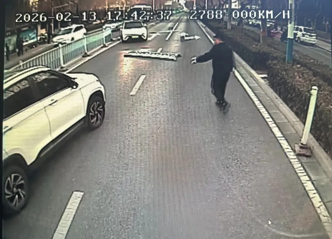 当日下午17:42分,张静波驾驶32路公交车行驶至以岭健康城站点,平稳出站后,他发现前方路况异常:一辆私家车由南向北行驶时不慎撞上道路护栏,护栏被撞断后横倒在马路中央,占据部分车道,导致过往车辆无法正常通行,现场存在安全隐患。